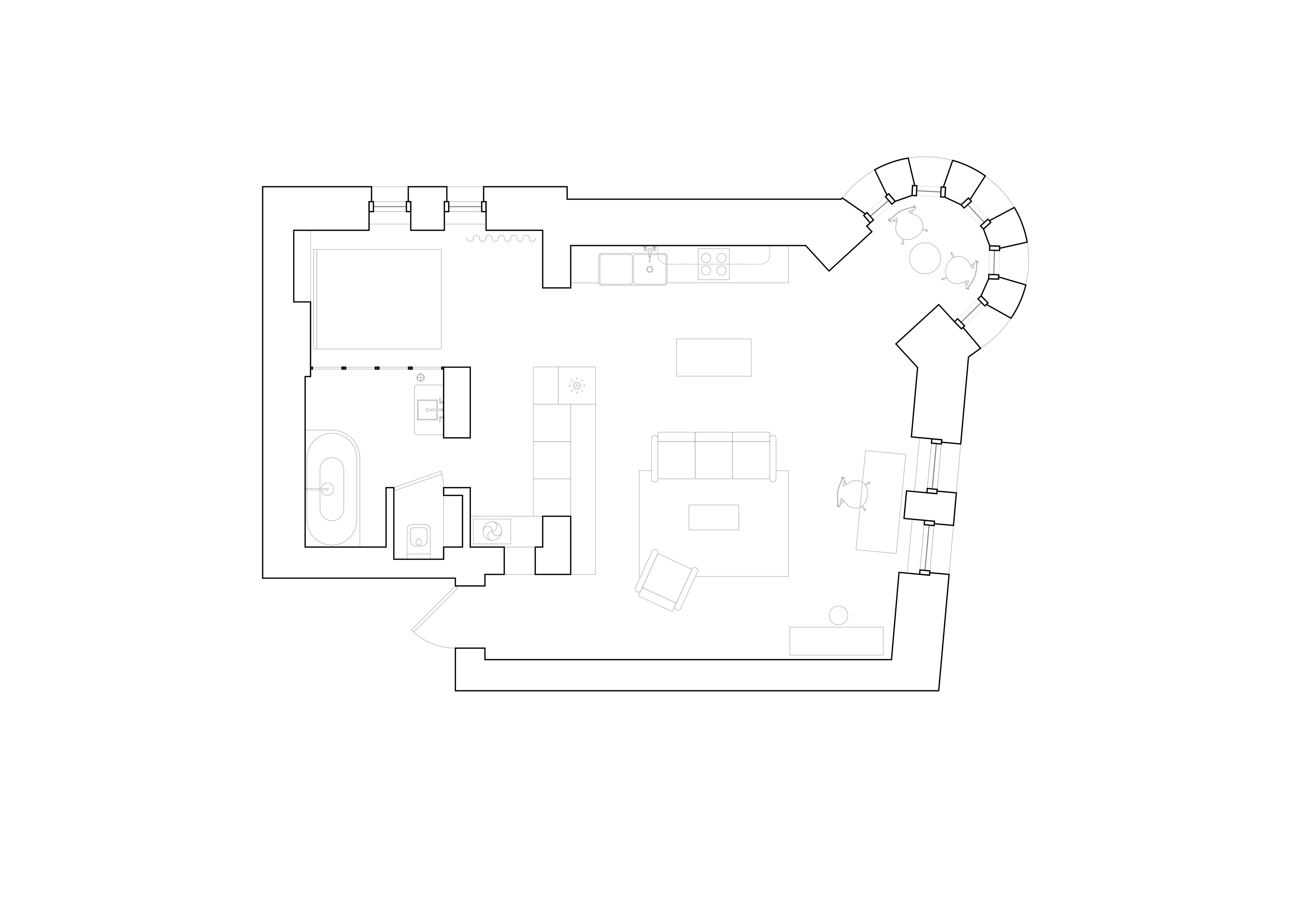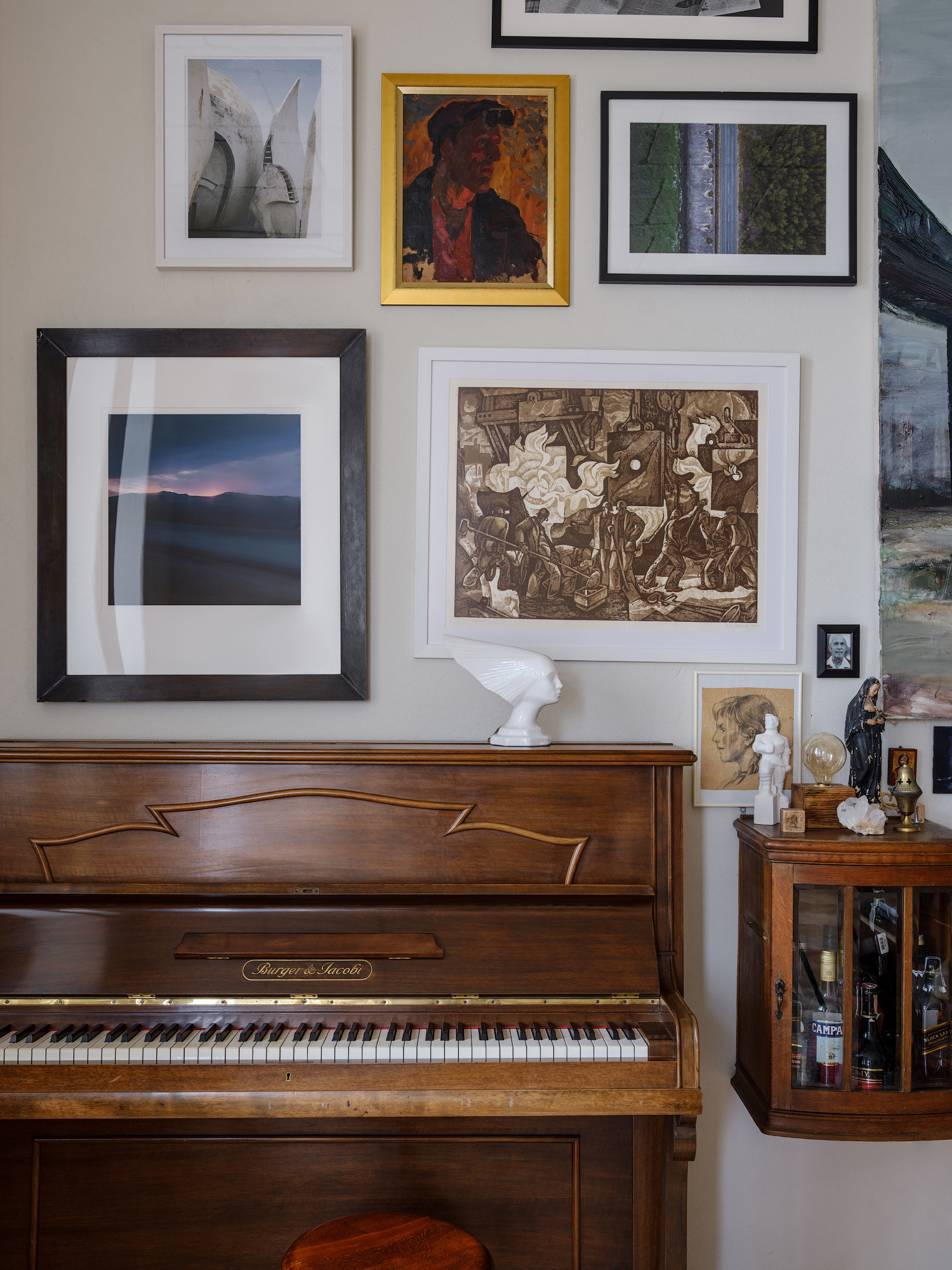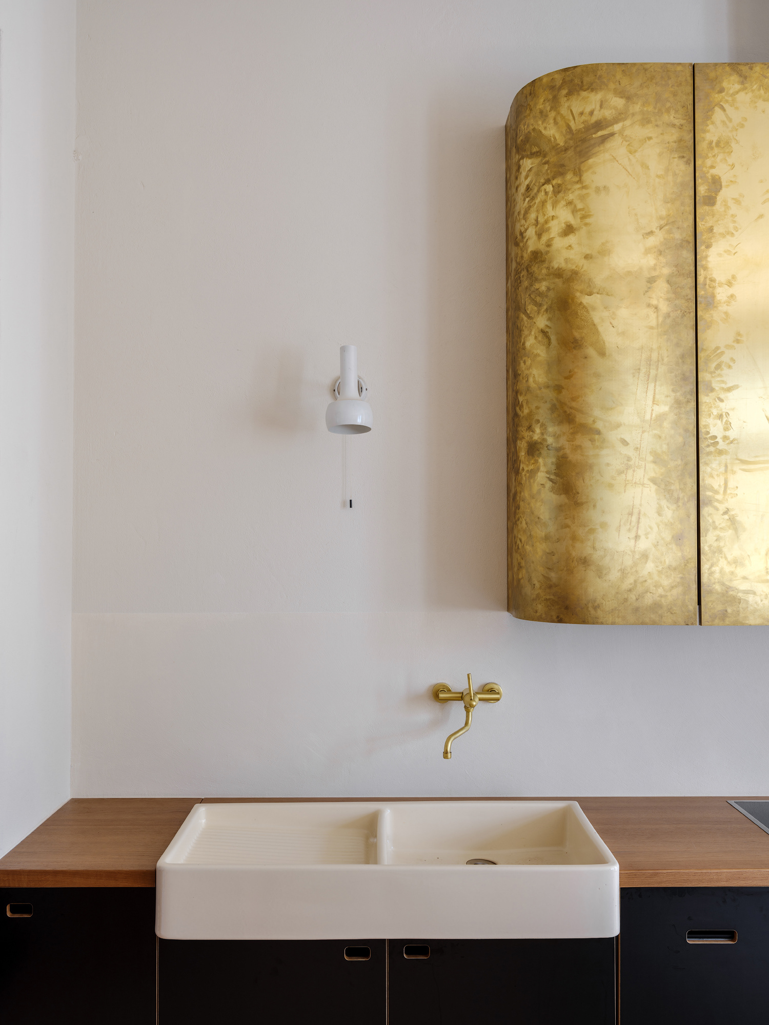 The apartment located on the fifth floor of a pre-revolutionary period (the early 20th century) apartment building in the heart of Kyiv was designed by Emil Dervish for his friend Marc Raymond Wilkins. The owner of the apartment is a talented filmdirector who previously lived in New York and Berlin but decided to move to Reytarska, the most beautiful street in Kyiv. The apartment features high ceilings (3.7m) and unusual shape. The name of the apartment Birdsnest is explained by the fact that it is located on the top floor in a tower with a cone-shaped roof. The finishing of the apartment focuses on a creating a cozy atmosphere − warm wood textures, ivory plaster walls, and ceiling made of old concrete blocks, brass elements. The pieces of furniture and such details as window and door handles were specially designed for this project, sofa and armchairs were transported from Berlin. The kitchen sink used to belong to Marc's great-grandfather, and the piano used to belong to his mother. The apartment is decorated with a range of vintage pieces, unique prints, and paintings, for example, the portrait of a man in the bedroom is a painting by the owner's father.